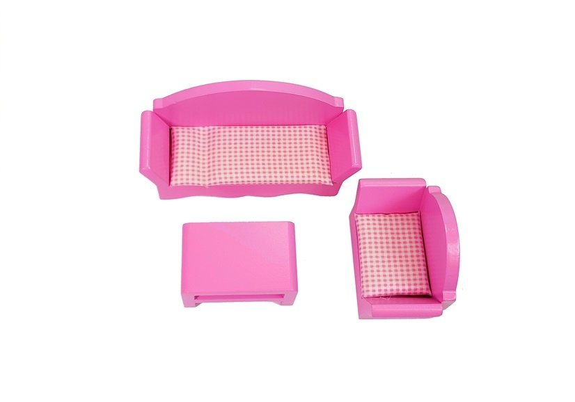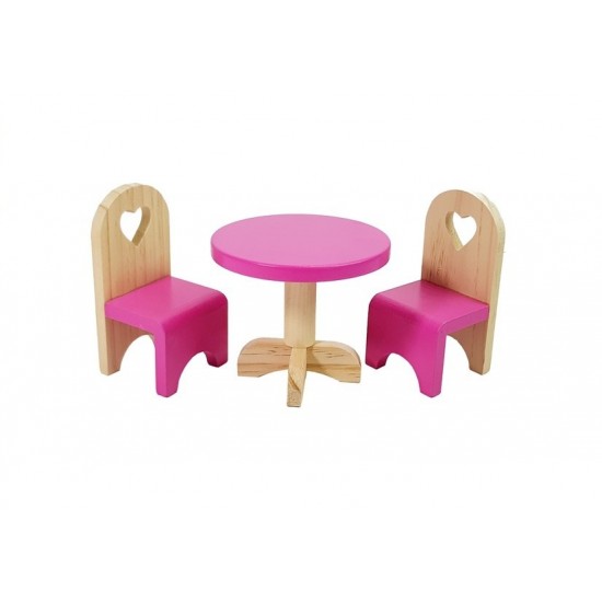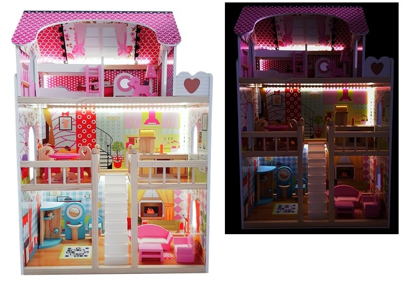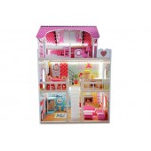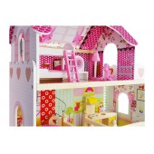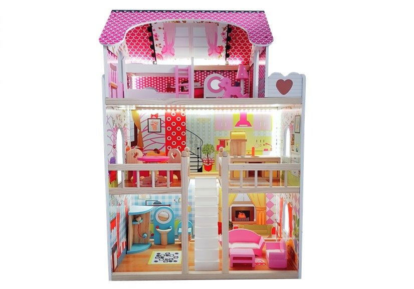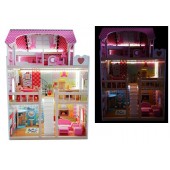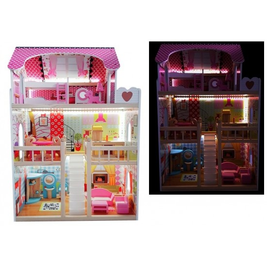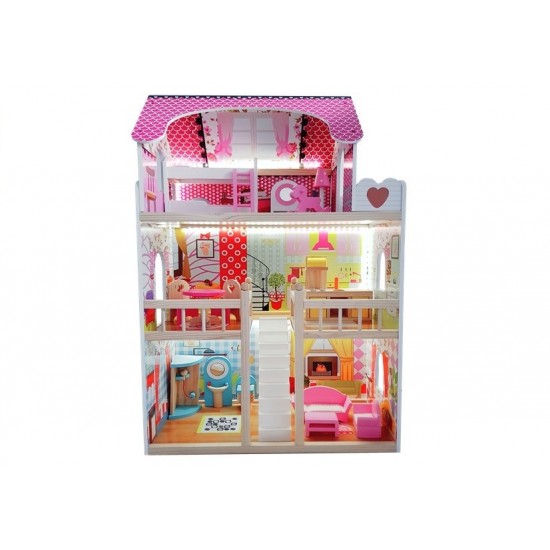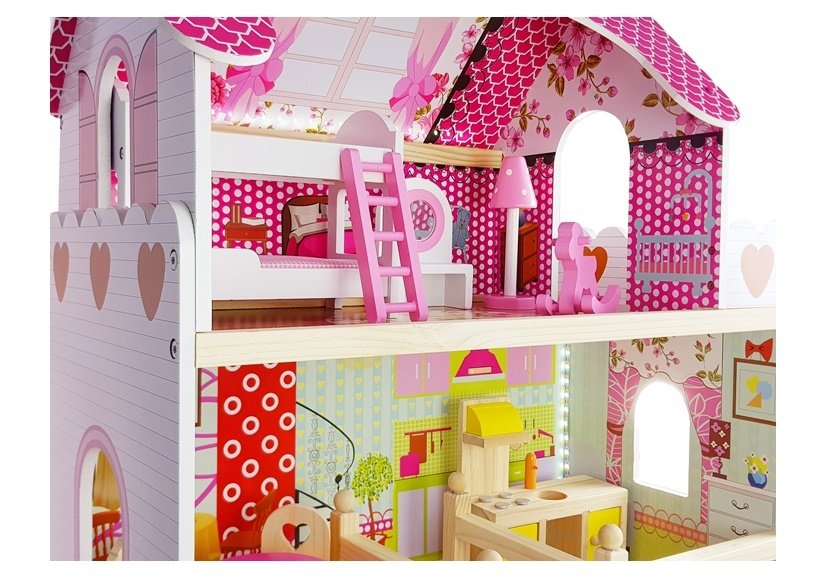 Casuta pentru papusi din lemn Melisa culoare roz cu luminite led
