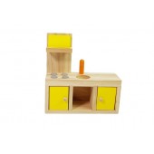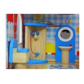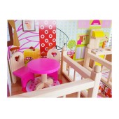 Pentru ca jocul sa fie mai interesant, casuta dispune de elemente din lemn precum lavoar, wc, cabina de dus, scaunele si matuta adevarate, scari, dulapioare, canapele si tot ce este necesar intr-o casuta modernizata.