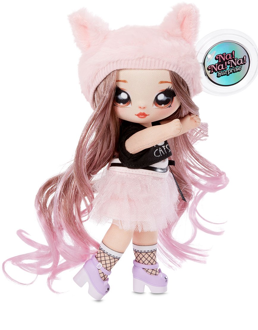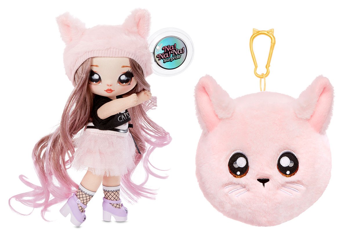 Set 2 in 1 NA! NA! NA! SURPRISE S1 W2 papusa si breloc plusat Pisica roz Khaterine Whiskers