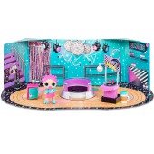 Setul include: papusa L.O.L. SURPRISE, cutie pentru scena, 2 piese de mobilier pentru papusa, sticluta, incaltaminte, haine, accesorii.
