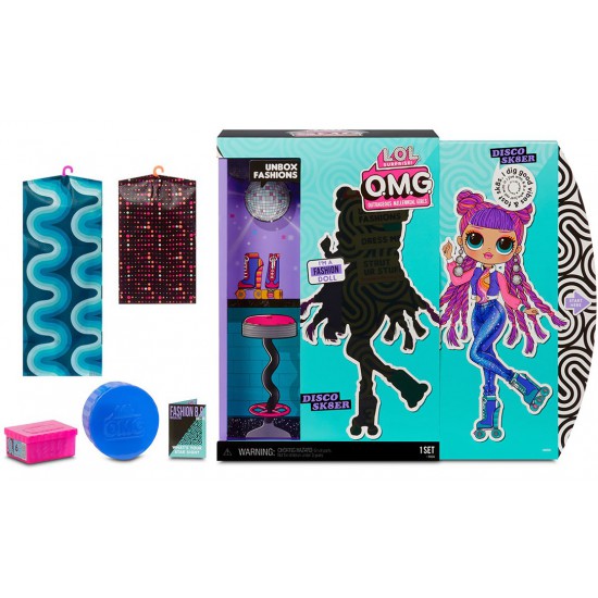 Setul include: papusa L.O.L. SURPRISE, seria O.M.G" seria 3, hainute, incaltaminte cu cutiuta, cercei, umerase, gentuta, pieptene, huse pentru haine, stand pentru papusa, accesorii, cutiuta-garderob.
