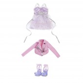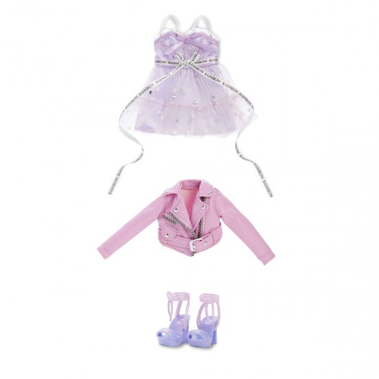 Setul include: 1 papusa, 2 seturi de imbracaminte, 2 perechi de incaltaminte, 1 pieptene, 1 accesoriu, 2 cuiere, 1 stand.