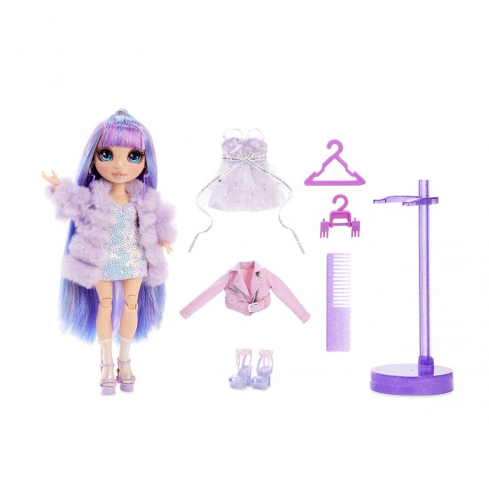 Faceti cunostinta cu una din papusile dragute si fashioniste de la Rainbow High - Violet. Eroina noastra si-a dat seama de mica ca va deveni vedeta. Violet are un stil glamuros si poarta tinute luxoase pentru ca este mereu in centrul atentiei. Papusa va cuceri inima fetitei dumneavoastra.