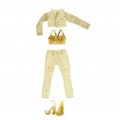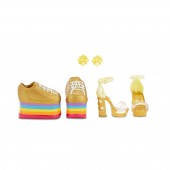 Setul include: 1 papusa, 2 seturi de imbracaminte, 2 perechi de incaltaminte, 1 pieptene, 1 accesoriu, 2 cuiere, 1 stand.