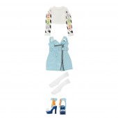 Setul include: 1 papusa, 2 seturi de imbracaminte, 2 perechi de incaltaminte, 1 pieptene, 1 accesoriu, 2 cuiere, 1 stand.