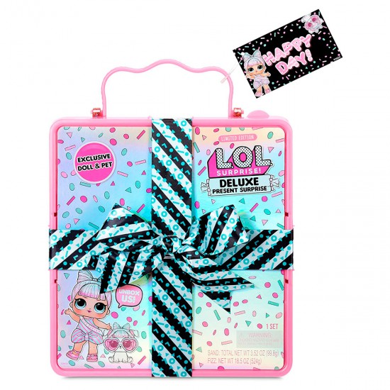Set L.O.L. Surprise! Seria Present Surprise DEUXE Roz cu papusa si animalut exclusiv