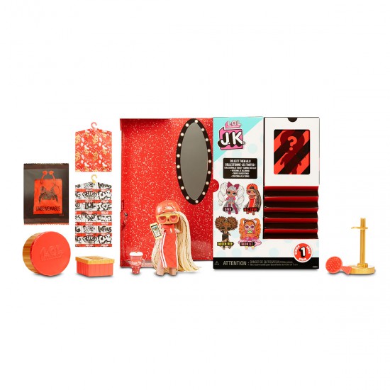 Setul include: papusa L.O.L. Surprise din seria J.K, imbracaminte, incaltaminte pe platforma inalta in cutiuta, cuiere pentru haine, perie de par, huse pentru haine, suport pentru papusa, sticluta, cutiuta pentru palarie, accesorii. Colectionati toate papusile L.O.L. Surprise. Recomandat copiilor cu varsta de peste 3 ani. Confectionat din materiale polimerice.
