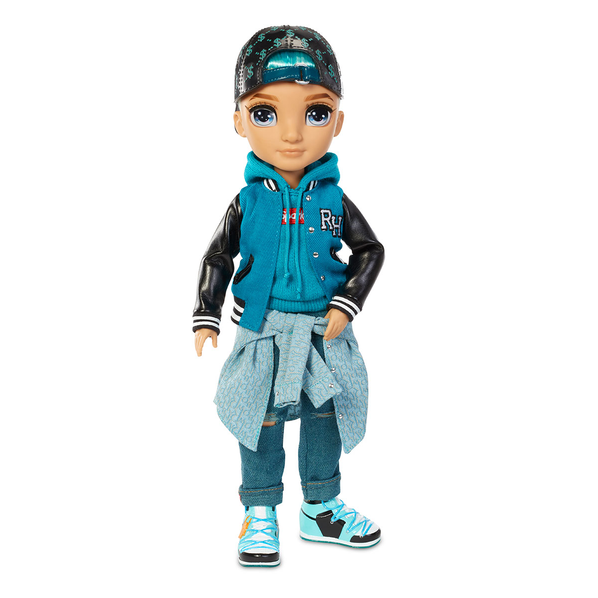 River Kendall, cu adidasii ei de top, blugii rupti si jacheta turcoaz la moda, merita sa fie numit cel mai la moda tip din Rainbow High! La urma urmei, papusile pentru fete ar trebui prezentate nu numai de fete, nu?