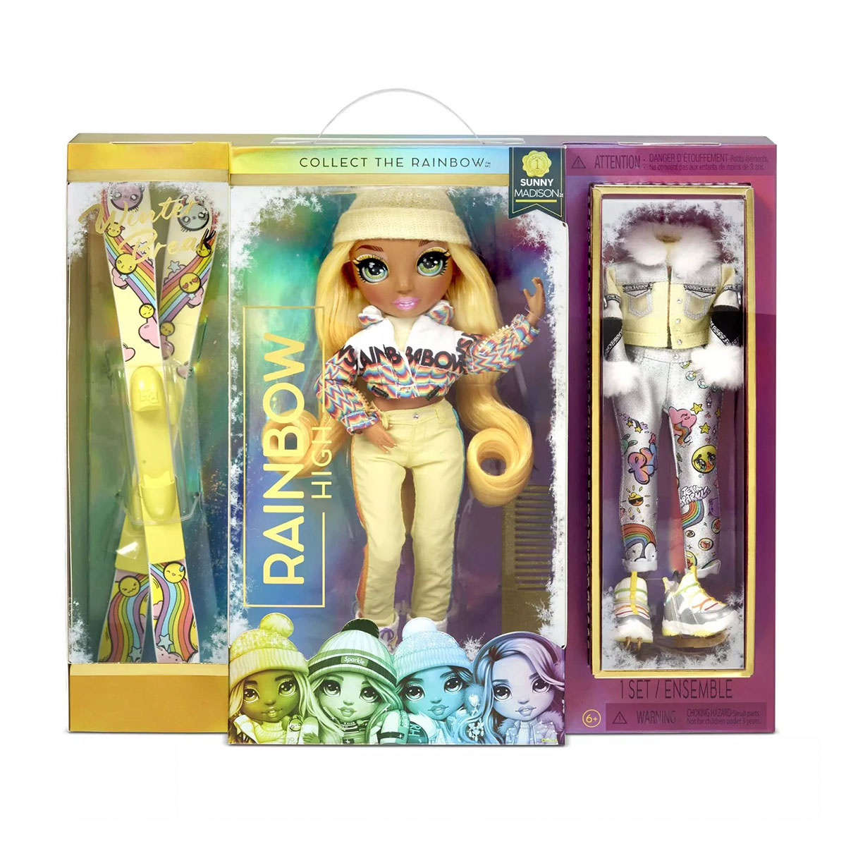 Vino la Toyland sa o gasesti pe mica si adorabila papusa Rainbow High Winter Break -Sunny Madison. Aceasta este aranjata intr-un costum elegant, cu par ?i haine galbene.