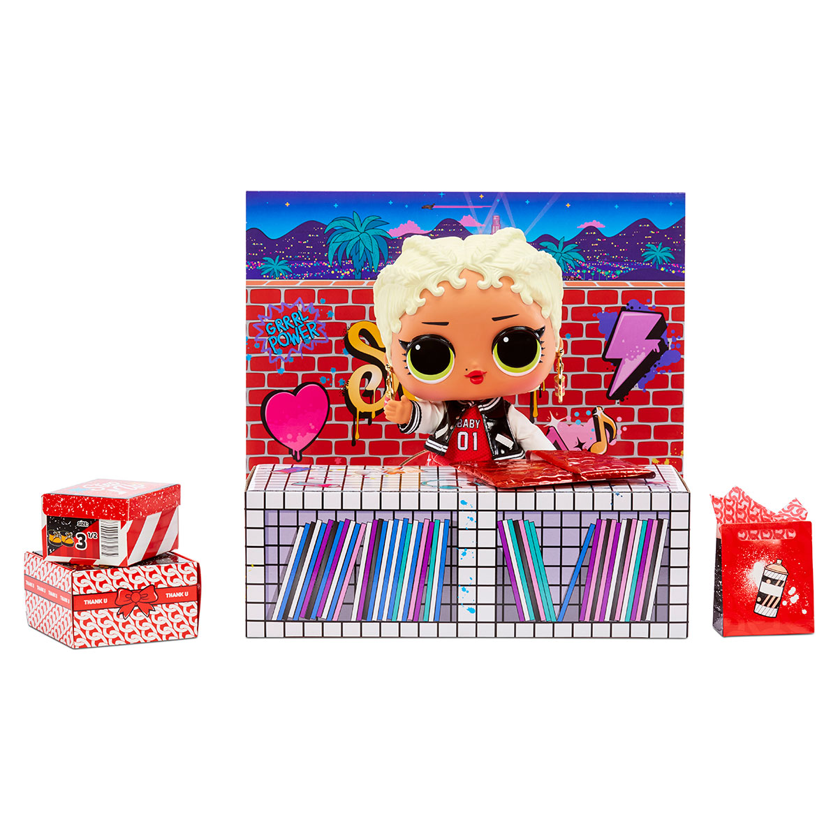 Noul set Mega Doll L.O.L Surprinde! Seria „Big B.B.Doll” – Lady DJ este cea mai mare papusa L.O.L. pe care ai vazut-o vreodata. Bebelusul stilat tocmai s-a intors de la cumparaturi si se grabeste sa-si arate cumparaturile. Ea poate elimina chiar ?i un review-unboxing la moda, pentru ca in set are o masa si un scaun confortabil! Acest bebelus mare are haine adevarate, un rucsac elegant si cercei la moda care se transforma in bijuterii reale.