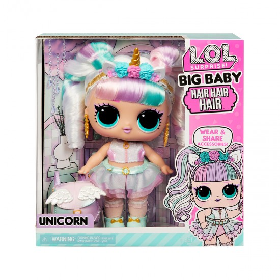 Mega papusa L.O.L. Surprise! Big Baby Hair Hair Hair" - Unicorn