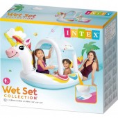Bazinul gonflabil "Unicorn" Intex 58435 este o noua aparitie din 2022, ideal pentru zilele calduroase de vara. Cu un design adorabil de unicorn, acest bazin are un acoperis gonflabil care protejeaza copilul de razele soarelui, iar un mic fantanel, care functioneaza cu ajutorul unui furtun de gradina, adauga o racoare suplimentara pentru distractie.