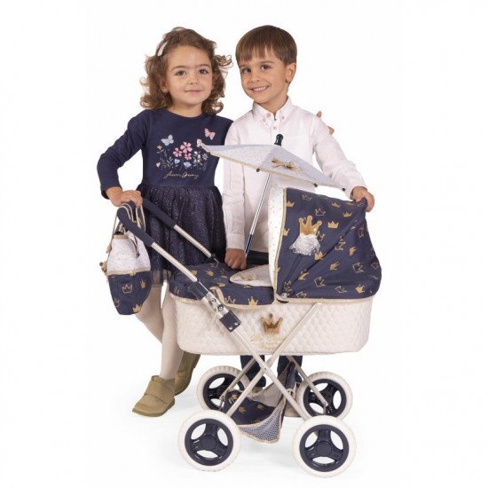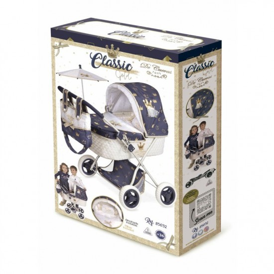 Carucior pliabil pentru papusi cu umbrela, geanta si accesorii 60 cm Classic Gold 2020