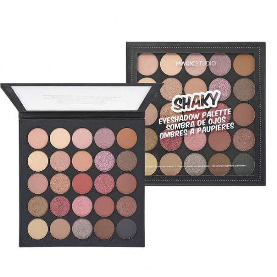 Ingrediente: MAGIC STUDIO SHAKY PALETTE EYESHADOW: TALC. MICA. MAGNESIUM STEARATE. DIMETHICONE. ETHYLHEXYL PALMITATE. PARAFFINUM LIQUIDUM. PHENOXYETHANOL. CAPRYLYL GLYCOL. POLYISOBUTENE. ETHYLHEXYLGLYCERIN.MAY CONTAIN +/- [YELOW IRON OXIDE (CI 77492). RED IRON OXIDE (CI 77491). BLACK IRON OXIDE (CI 77499). TITANIUM DIOXIDE (CI 77891). ULTRAMARINES (CI 77007). CARMINES (CI 75470). FD&C RED 40 LAKE (CI 16035). FD&C YELLOW 5 AL LAKE (CI 19140). MANGANESE VIOLET (CI 77742). FD&C BLUE 1 AL LAKE (CI 42090). FERRIC FERROCYANIDE (CI 77510)]