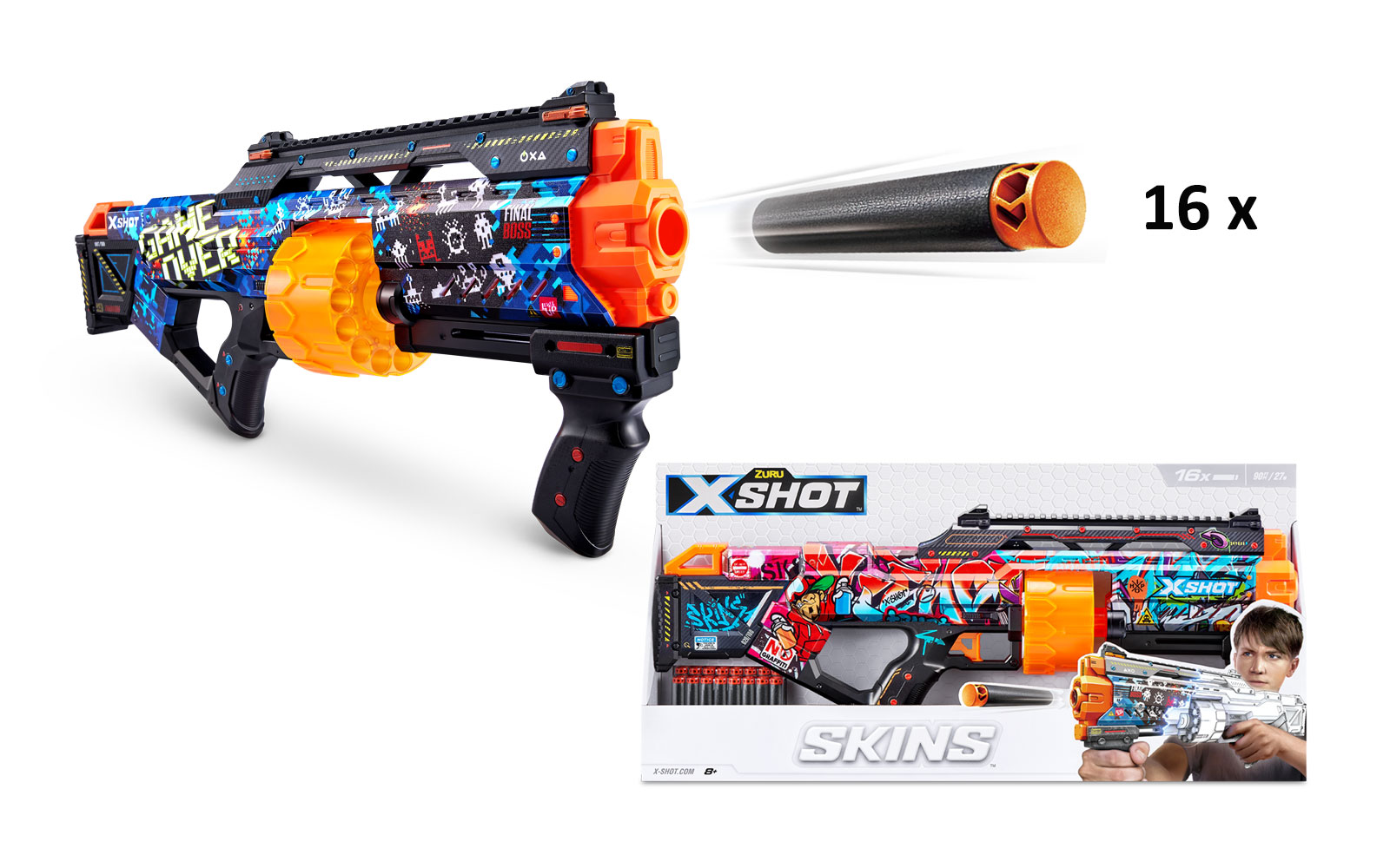 Blaster X-Shot Skins Last Stand Gun Machine cu 16 cartuse 3 tipuri 25535