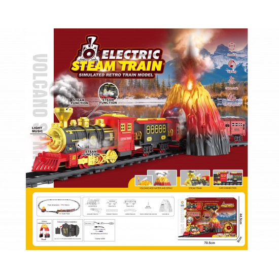 Set Tren cu cale ferata Vulcan, 3 vagoane, sunete, lumini, 3 efecte fum, acumulator