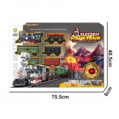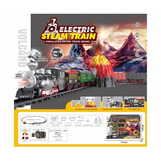 Set Tren Vulcan cu cale ferata, 5 vagoane, sunete, lumini, 3 efecte fum, acumulator