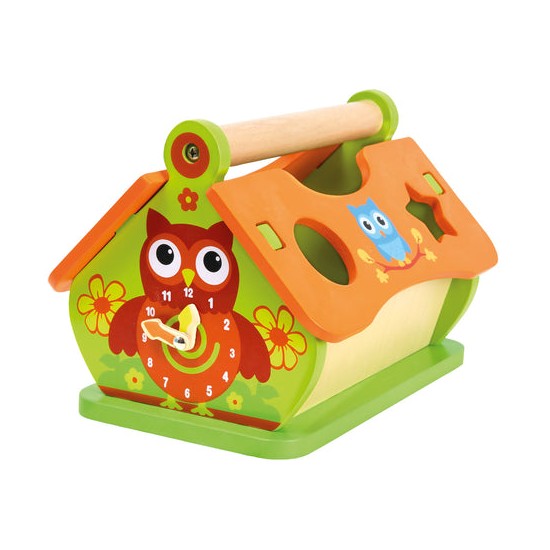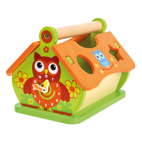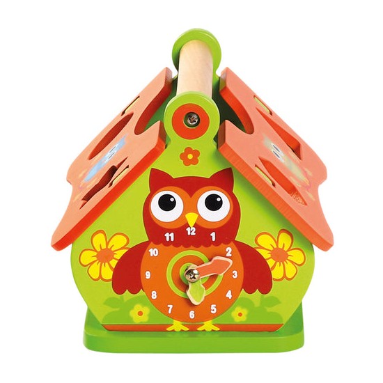 Sortator Casuta din lemn multicolora cu ceas si forme geometrice