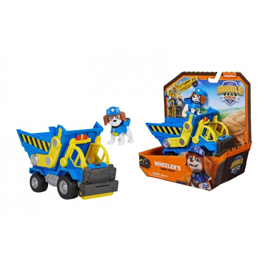 Vehiculul Wheeler's Truck din seria Paw Patrol Rubble and Crew aduce o noua dimensiune distractiei! Acest camion inovator este conceput pentru transport si descarcare de marfuri, oferind copiilor posibilitatea de a recrea aventurile pline de actiune si constructii din universul Paw Patrol.