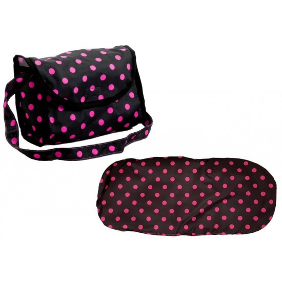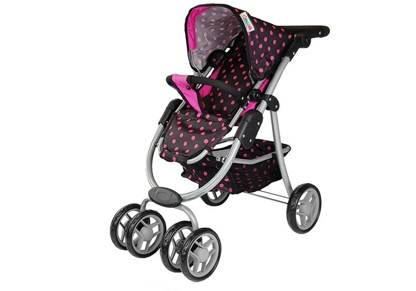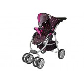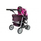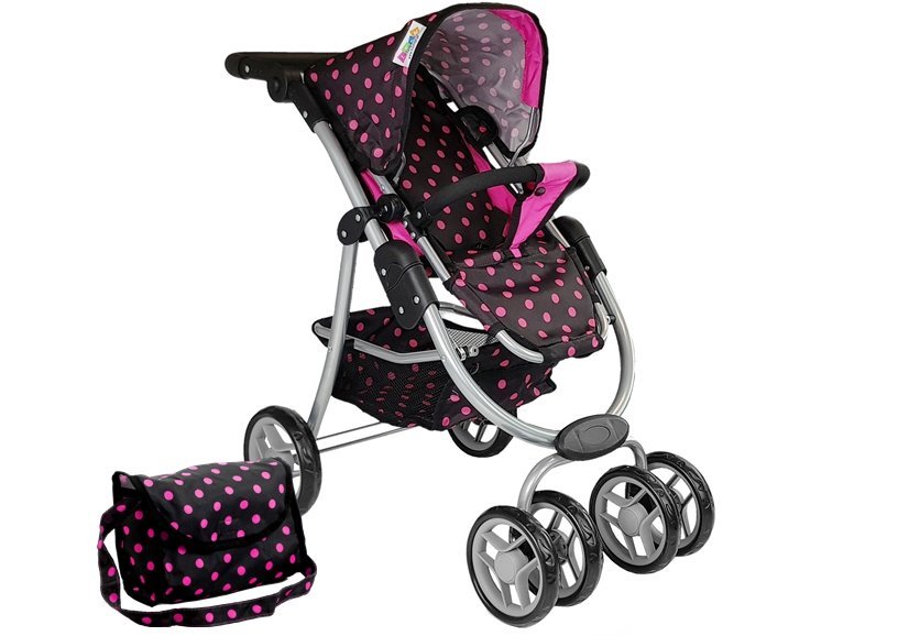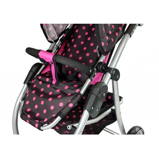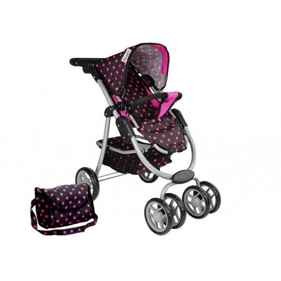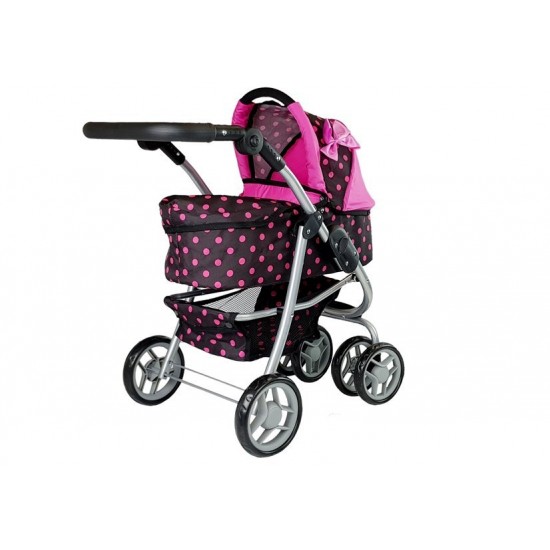 Carucior pentru papusi 2 in1 roz-negru cu gentuta