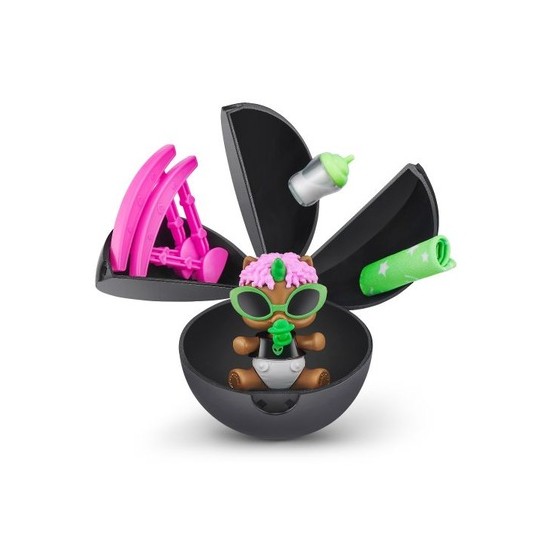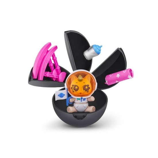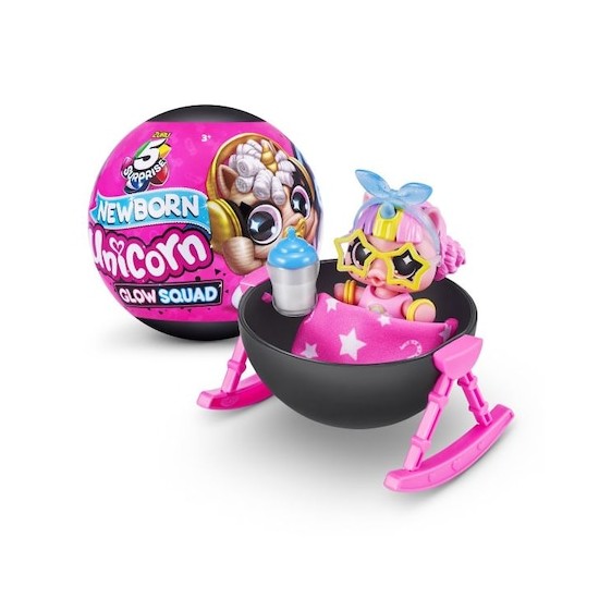 Desfaceti, decojiti si dezvaluie nou-nascutul unicorn! Odata ce iti desfaci dragutul stralucitor in intuneric unicorn, magia continua sa curga cu noua capsula transformandu-se intr-o cada sau o casuta. Asamblati baia, umpleti-o cu apa rece si scufundati-va unicornul pentru a dezvalui un scutec surpriza care isi schimba culoarea. Dupa baie imbraca-i in tinutele lor stralucitoare!