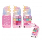 PALETA FARDURI PENTRU PLEOAPE SI BALSAMURI BUZE cu imaginea indragitului Magical Unicorn inspira micile domnisoare cu sugestii de look-uri si ofera uneltele necesare pentru aplicarea produselor. Cadoul perfect!