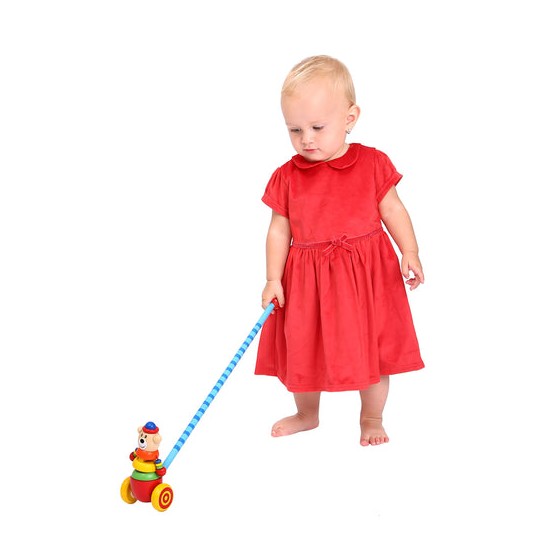 Aceasta jucarie de impins Urs fie ca e trasa sau impinsa, copilul va fi incantat atunci cand jucaria va fi pusa in miscare, datorita labutelor care se misca.