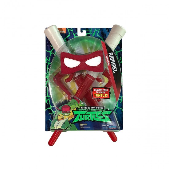 Echipamentul lui Raphael este o adevarata descoperire pentru tanarul ninja! Simte-te ca un erou, pentru ca acum te poti transforma in personajele tale preferate folosind o bandana, inarmata cu armele lor realiste.