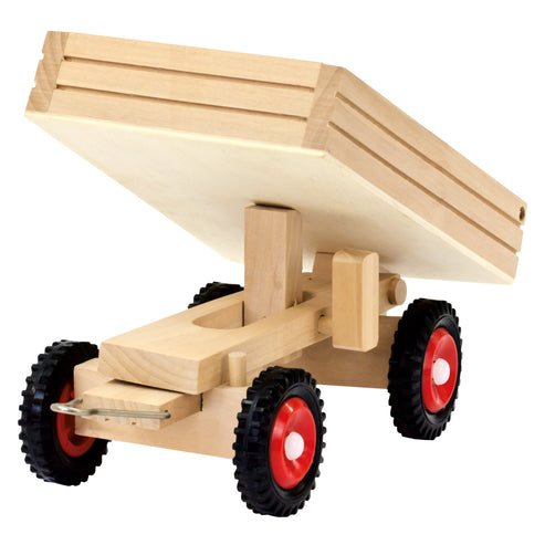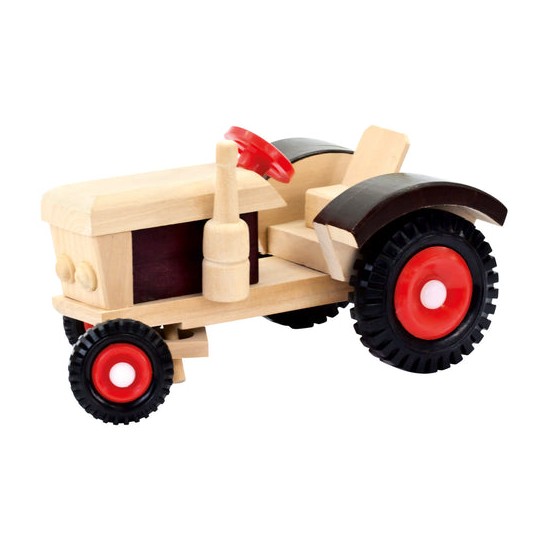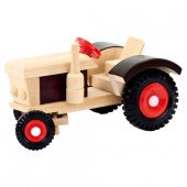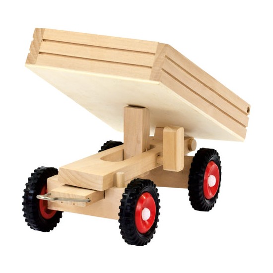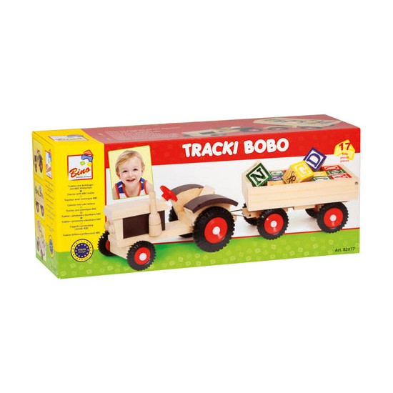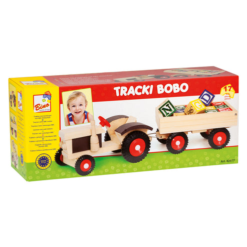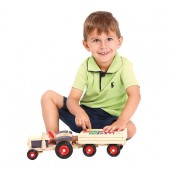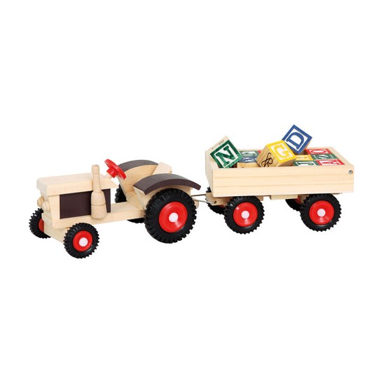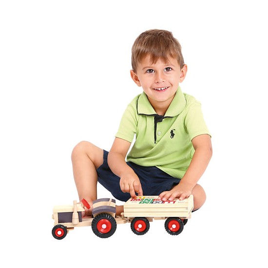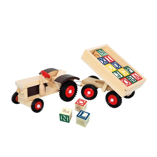 Jucarie Tractor din lemn cu remorca si cuburi ABC 17 piese