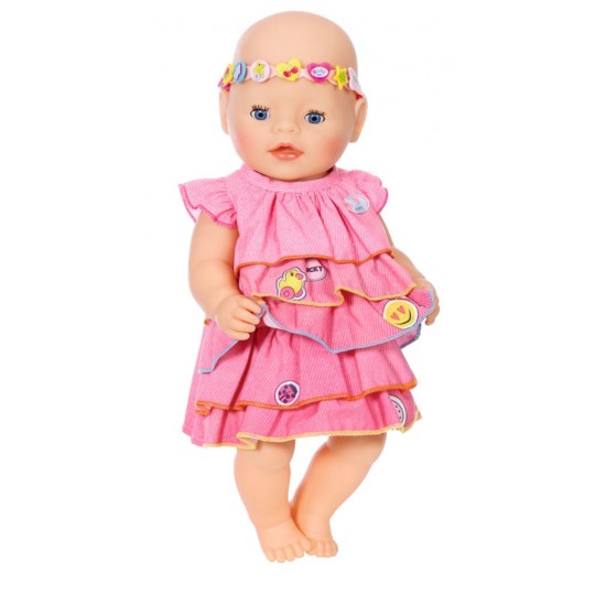 Papusa Baby Born adora zilele fierbinti de vara. Micuta arata senzational in aceasta rochi eleganta. Hainele sunt produse din materiale de calitate.