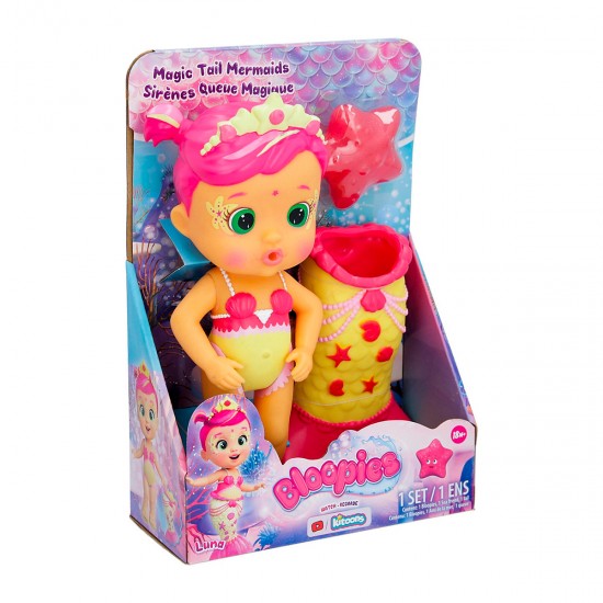 Papusa Luna 23cm - cu coada de sirena care isi schimba culoarea si scuipa apa Bloopies