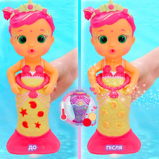 Daca pui papusa in apa calda, unele elemente ale cozii isi vor schimba culoarea! Iar daca ii dai papusei sa bea apa cu sapun, aceasta va stropi sau va sufla cu bule!