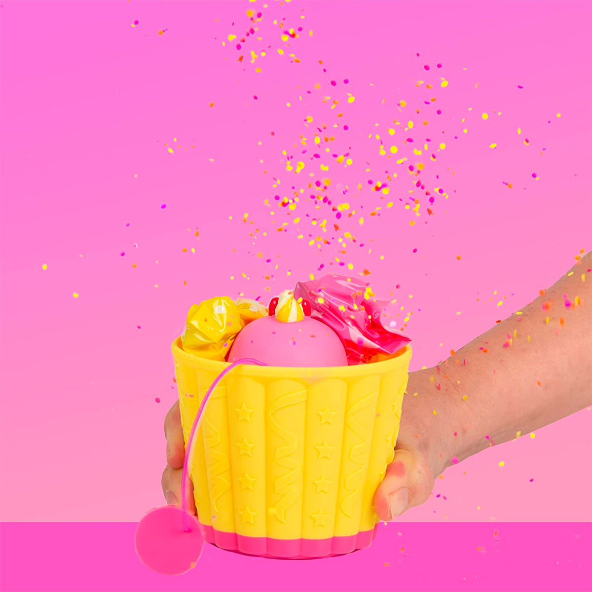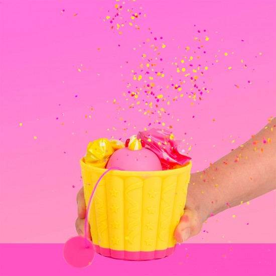 Micul erou s-a ascuns in interiorul unui cupcake. Deschide capacul si pregateste-te pentru artificii cu confetti!