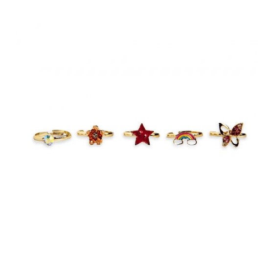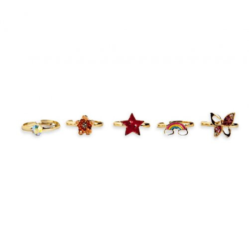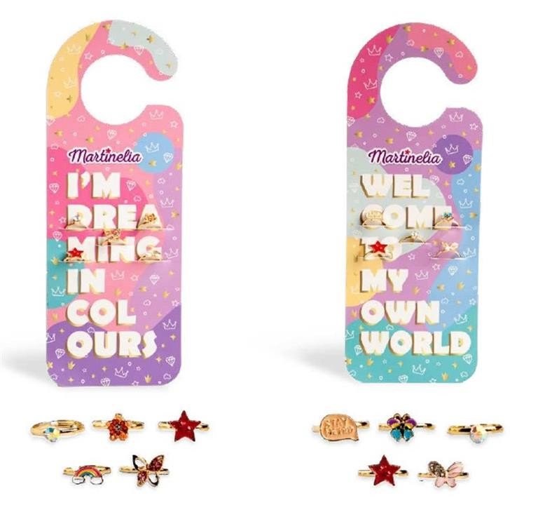 Un set uimitor de la Martinelia care include 5 inele pentru fetite, viu colorate si cu modele deosebite.