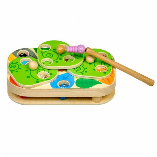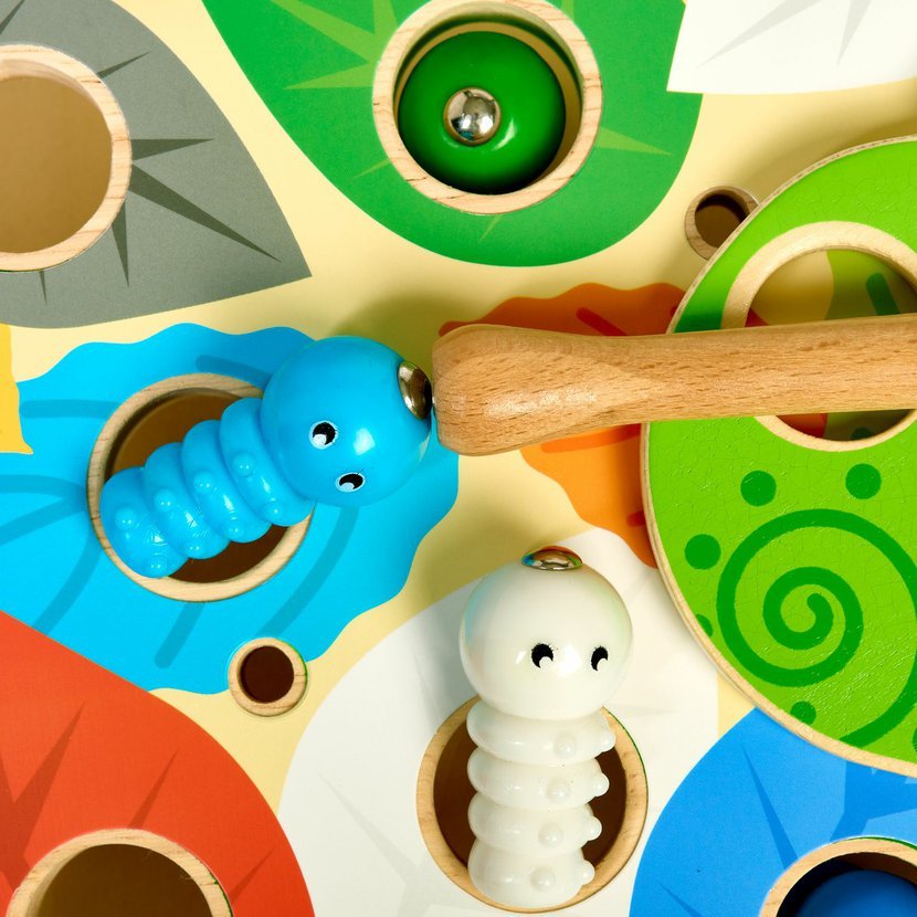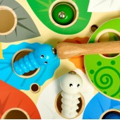 Joc magnetic din lemn - Prinde Omizile Lucy & Leo