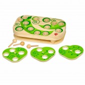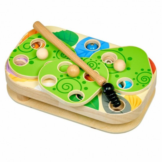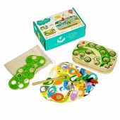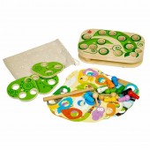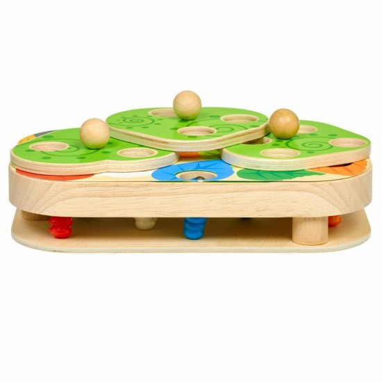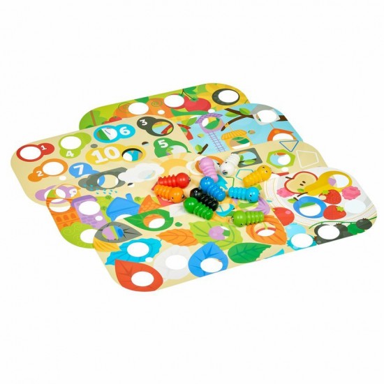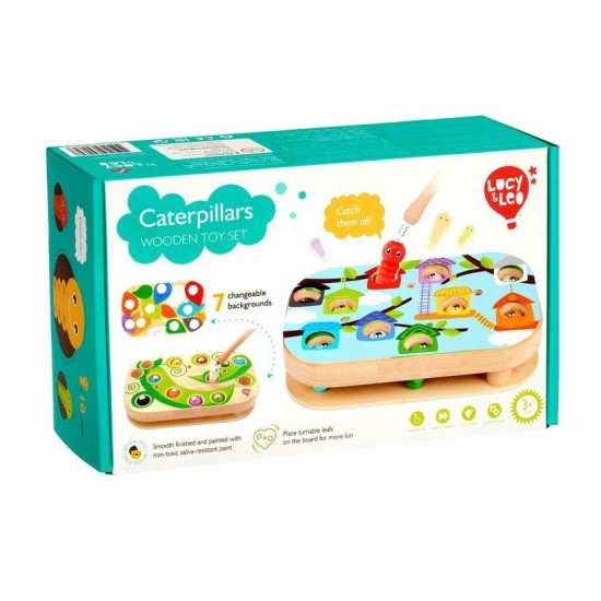 Caterpillars este un joc de masa cu magneti care consta dintr-o tabla de lemn de baza, 7 sabloane interschimbabile de culori, 10 omizi de diverse culori, baghete magice cu magnet, 3 frunze rotative si o punga de in in care pot fi depozitate toate detaliile de lemn.