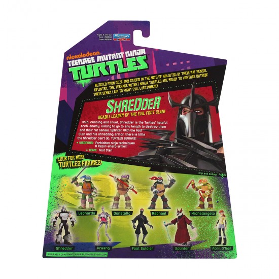 Shredder este liderul sinistru al clanului Foot! Principalul dusman al Splinter si Turtles. Cu o armata uriasa si o armura ascutita, nimic nu este imposibil pentru Shredder. Inaltimea figurii este de 12 cm.