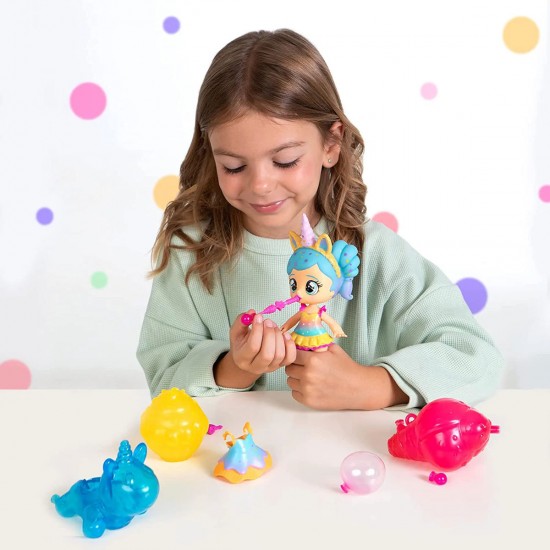 Papusa vine cu accesorii si baloane pe care papusa le poate umfla! Este necesar sa introduci cilindru tubului cu o parte in gurita papusii si sa atasezi una dintre bile pe cealalta parte. Strange capul papusii pe ambele parti si urmareste cum se umfla balonul! Pur si simplu uimitor!