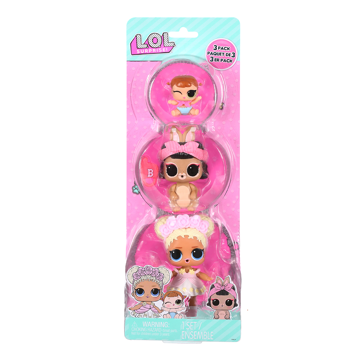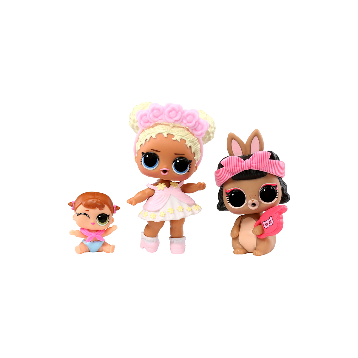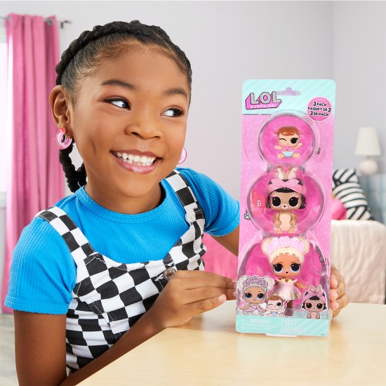 Set 3 figurine L.O.L. Surprise! seria OPP Tot + Pet + Lil Sis - Flower Child + Short Stop Hop + Lil Majorette
