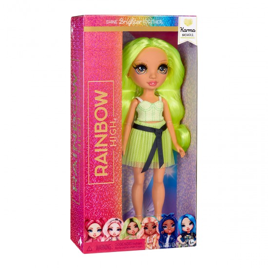 Papusa RAINBOW HIGH din seria "OPP" - Karma - o frumusete de papusa, fermecatoare, cu par si haine de culoare verde neon.