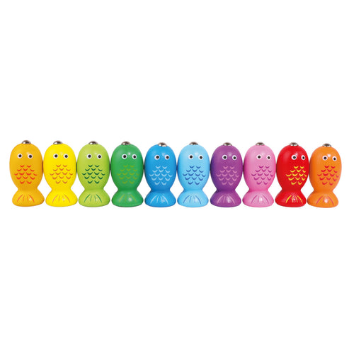 Joc de pescuit magnetic - in partea de sus sunt insiruiti pestisori colorati ce pot fi pescuiti cu undita cu varf magnetic;