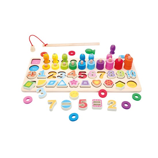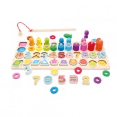 Set educativ din lemn 4 in1, cifre, numaratoare, figuri geometrice, pescuit magnetic