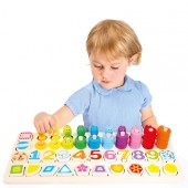Forme geometrice frumos colorate ce se sorteaza in spatiile incastrate pe placa suport;