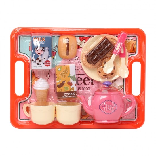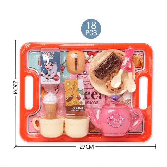 Platou cu set de ceai pentru copii si biscuiti de jucarie 18 el., ZJA323774