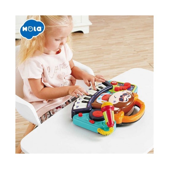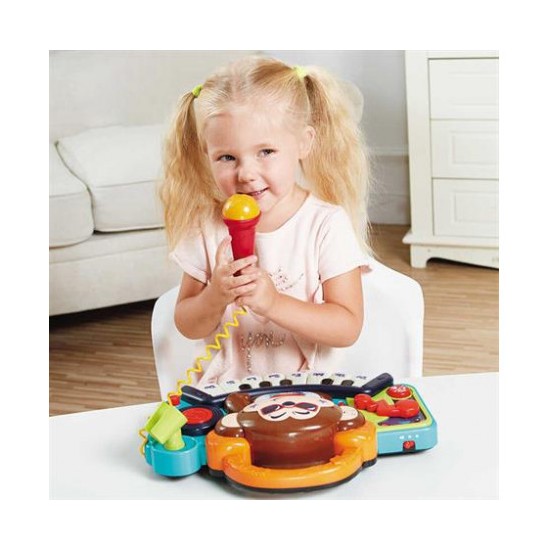 Pianul muzical in forma de maimutica este o jucarioara potrivita pentru dezvoltarea simturilor artistice ale copiilor, incurajand dragostea si pasiunea pentru muzica. Pianul este perfect pentru copilasi de la varste fragede deoarece, este echipat cu clapete fine care stimuleaza simtul tactil, are un microfon care influenteaza pozitiv atitudinea copilului fata de scena si incurajeaza siguranta in gandire si prezentare, emotiile si creativitatea.