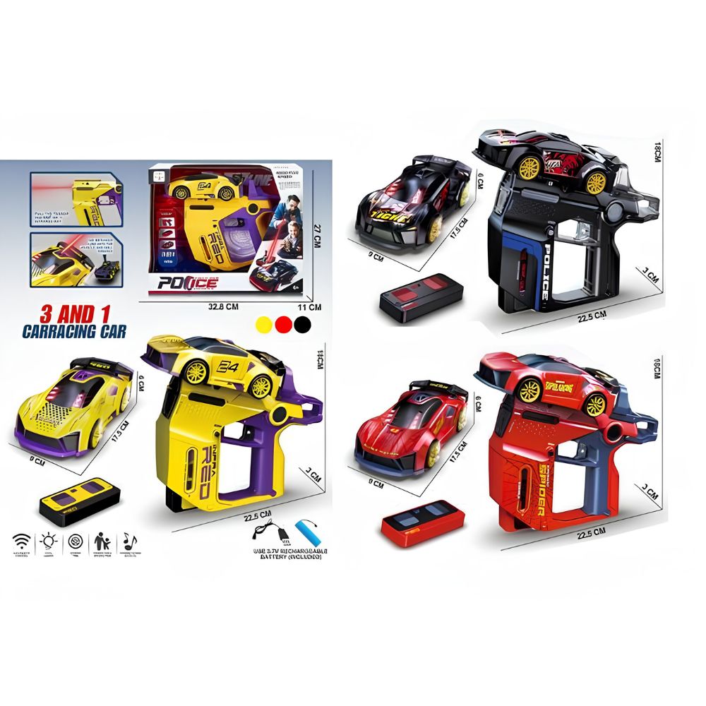 Pregateste-te pentru o experienta de joc multifunctionala cu setul 3 in 1 Car Racing! Aceasta jucarie inovatoare combina adrenalina curselor cu telecomanda (RC) cu actiunea unui lansator de masini. Setul include o masina de curse detaliata si un dispozitiv tip "pistol" care serveste atat drept statie de lansare prin infrarosu, cat si ca suport pentru masina.