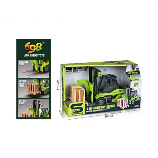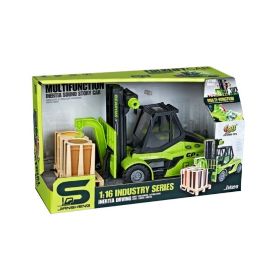 Jucarie Stivuitor verde cu frictiune, sunete si lumini, 1:16, jstoys, ZJA345711