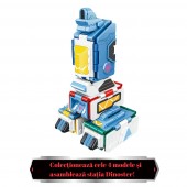 " Colectie unica: 4 modele de masinute, combinabile pentru a forma o DinoBaza 4 in 1.