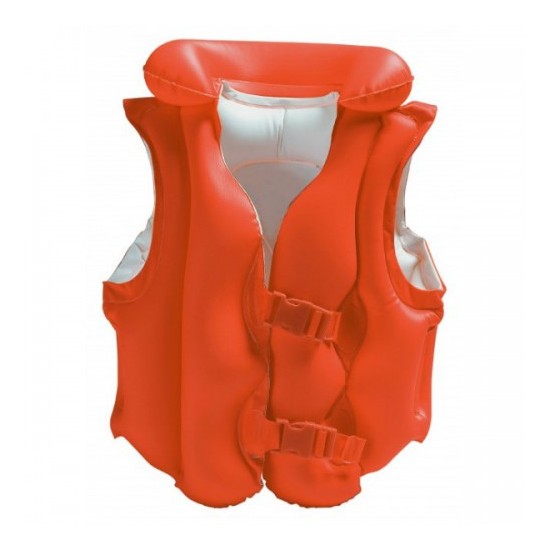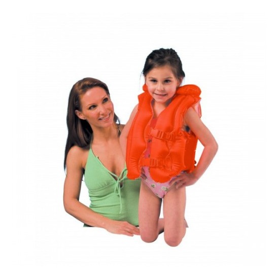 Vesta gonflabila, are 3 despartituri de umflare pentru o mai mare siguranta pe apa, un guler gonflabil care sustine capul copilului. Curelele vor ajuta la reglarea vestei sub copil. De inalta calitate, durabila, sigura, aceasta vesta gonflabila va ajuta copilul sa invete cum sa inoate. Ofera siguranta totala asupra apei, permite copilului sa se simta increzator. Pentru o mai mare siguranta, vesta este formata din trei compartimente independente de aer, echipate cu catarame confortabile reglabile pentru fixarea puternica a produsului. Este usor de utilizat, are cusaturi moi interne.