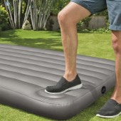 Salteaua Intex Full Downy este solutia ideala pentru cei care cauta confort si autonomie, fie ca este utilizata acasa pentru oaspeti sau in camping. Punctul forte al acestui model este pompa de picior incorporata, care permite umflarea completa a saltelei in doar cateva minute, fara a fi nevoie de pompe externe sau conexiune la electricitate. Suprafata de dormit catifelata este placuta la atingere si asigura aderenta lenjeriei de pat pentru un somn neintrerupt. Cu o inaltime de 25 cm, ofera o izolatie eficienta fata de sol, iar structura interna robusta garanteaza o stabilitate excelenta pentru o greutate de pana la 272 kg.